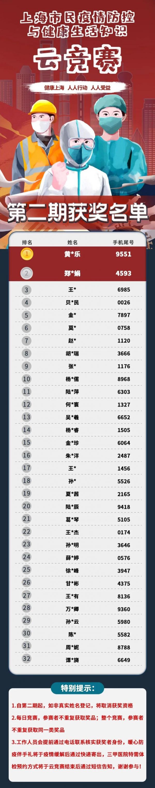 热烈祝贺获奖的小伙伴们哦!前两名将获得市第一人民医院的VIP体检套餐,其余将获得暖心防疫伴手礼。更多奖品等待着大家,请踊跃答题哦!