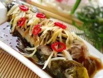2、大火蒸10分钟左右关火,出锅前,在鱼身上撒上葱花,并烧热15ml的油,直接浇在鱼身上即可。