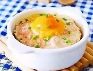 2、铺在碗中,用手将中间按出浅窝,磕入鸡蛋,上锅蒸10分钟左右即可。