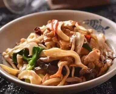 2、锅中底油,油热加姜丝爆香一下,倒入肉片煸炒发白,然后加点料酒继续翻炒下。