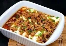2、将拌好的肉末放入一个平盘中铺平,上锅蒸10分钟至肉饼熟透即可。