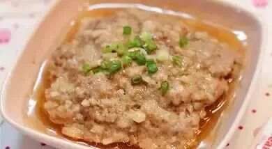 ps.马蹄还可以换成香菇、梅菜、莲藕、葱花,根据口味换点配菜就可以蒸出不同口味的肉饼。