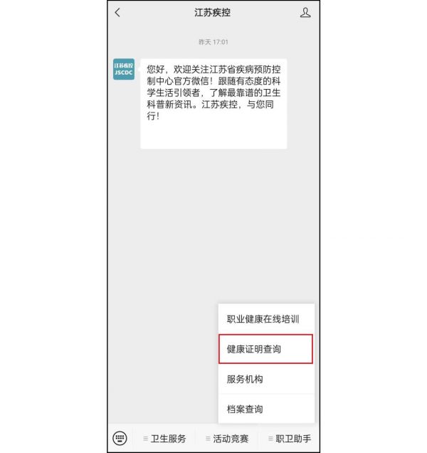 “从业人员健康检查合格证明系统”上线了,该系统对全省所有单位从业人员健康证明进行了归集管理,通过信息化系统实现全省健康证明电子化和全省通用,可以通过“江苏疾控”公众号,进行健康证明的查验。