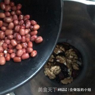 6、依次加入核桃和红豆