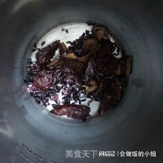5、红枣去核切碎与黑米和大米一同放入豆浆机中