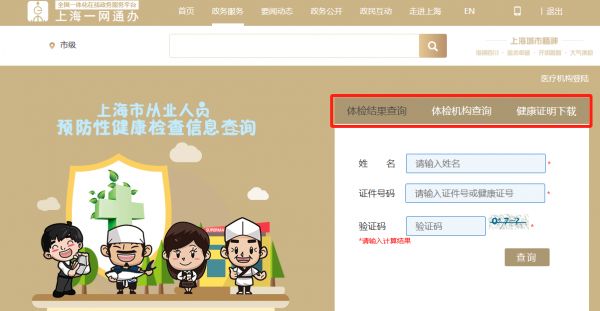 上海市从业人员预防性健康检查信息系统 (jkz.sh.cn)
