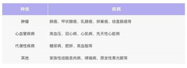 第四类-其他类型的疾病,比如家族性加肠息肉病、哮喘病和原发性青光眼等。