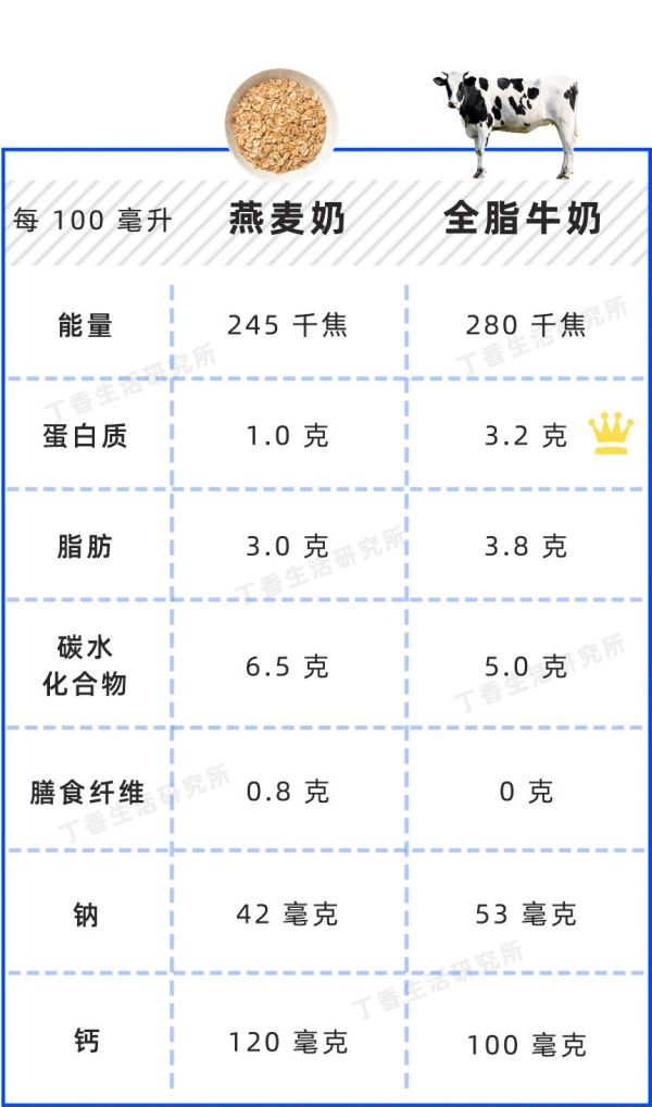 我们喝牛奶的目的主要是为了摄入优质蛋白质和钙,但这两点并不是燕麦奶的优势。所以,如果想用燕麦奶代替牛奶来补充营养,不算一个聪明的选择。