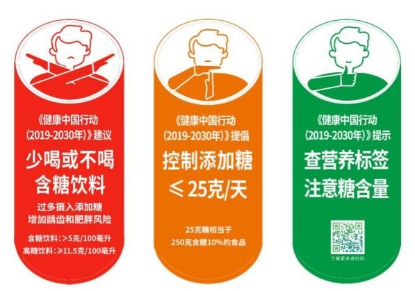 ❥提示语为“《健康中国行动(2019-2030年)》建议少喝或不喝含糖饮料,过多摄入添加糖增加龋齿和肥胖风险”。