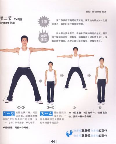 精美的图书加上2张VCD的同步教学,内容简单易学,自然健康,达到增高、健体、矫型的三重功效。主要介绍了力学增高体操,瑜珈、普拉提斯增高法,饮食增高法和冥想增高法,做好营养、运动、环境三个要素,从而达到增高的效果。