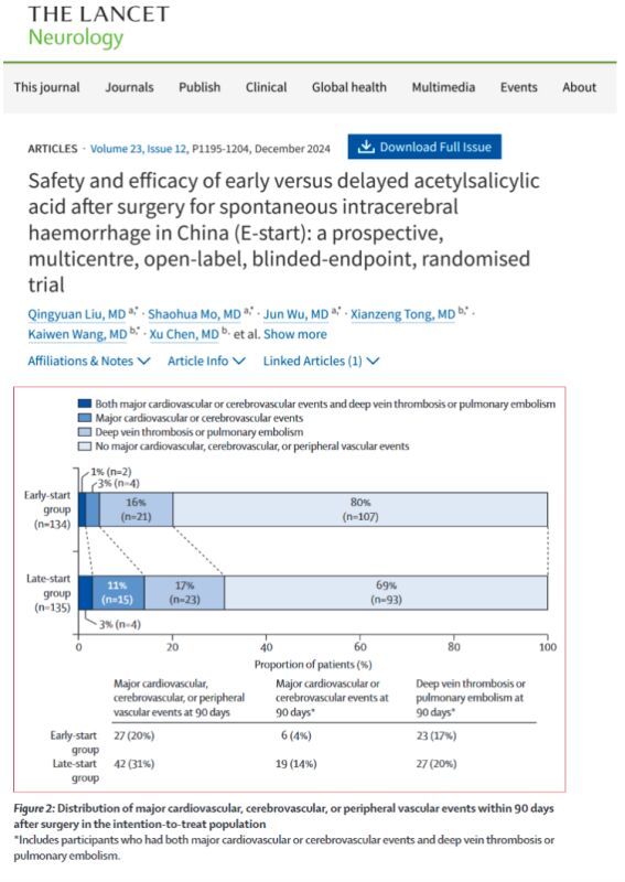 结果表明,与延迟组相比,早期接受抗板治疗患者术后 90 天主要心脑血管或外周血管事件发生率更低 ,不增加颅内出血风险。