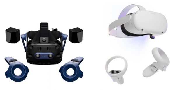 左:HTC头盔式虚拟现实显示系统 右:美国 Oculus头盔式一体机虚拟现实系统