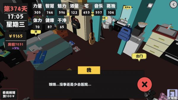 1.最常用的手段就是看病,我们的健康值越高看病用的费用就越少,特别是前面几个月刷视频的时候健康值低于70点就要去医院了,可以节约很多钱。健康越低看病越贵,和现实生活一样。