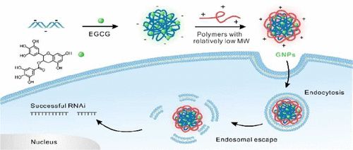 由于EGCG是纯天然绿茶提取物,阳离子聚合物的用量少,复合物显示出优异的生物相容性,因此,该课题组将这种超分子自组装所形成的纳米颗粒命名为“绿色纳米颗粒(GNPs)”。研究发现这些纳米粒子显著降低了不同细胞中不同靶基因的表达,表明这些粒子可以有效通过细胞膜。