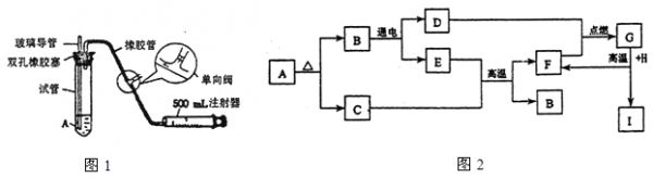 (3)A物质是从某地刚出土文物上刮下来的固体物质,实验证明它有图2所示的转化关系,F是一种用途十分广泛的银白色金属,G是一种黑色的化合物,D、E、F、H均为单质,据研究I气体是造成温室效应的“元凶”之一.