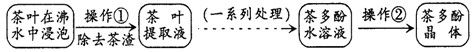 茶叶中含有的茶多酚有益人体健康.茶多酚是一种白色粉末.易溶于热水.易氧化变色.略有吸水性.实验室从茶叶中提取茶多酚的实验流程可简述为:(1)请写出上述实验过程中的操作名称:操作① ,操作——青夏教育精英家教网——