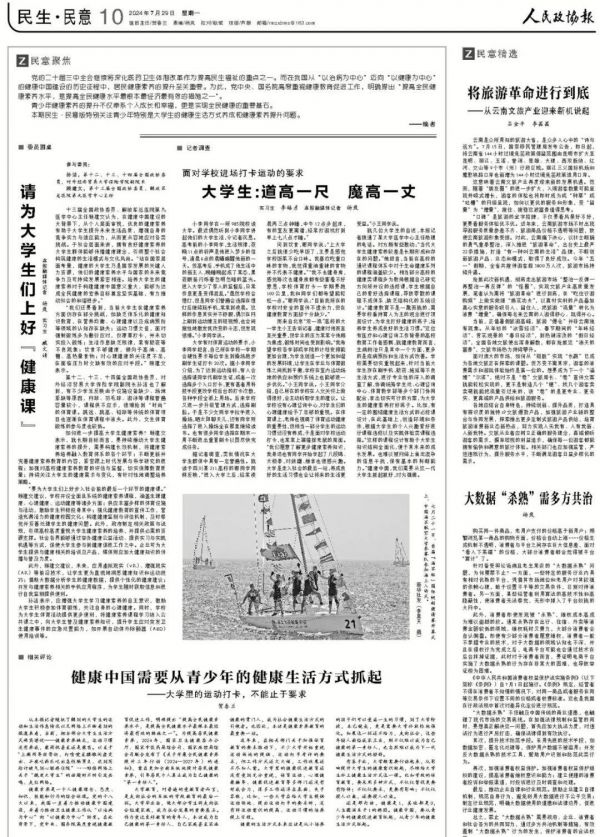 本期民生·民意版特别关注青少年特别是大学生的健康生活方式养成和健康素养提升问题。