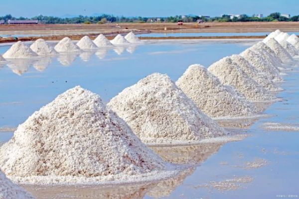 海盐:从海水中提取。在阳光下,海水经过蒸发留下盐分。这种方法成本低廉,在全球范围内都有广泛的应用。除了直接从海水中提取外,人们还通过将海水引入晒盐池,经过日晒和蒸发,最终得到海盐。