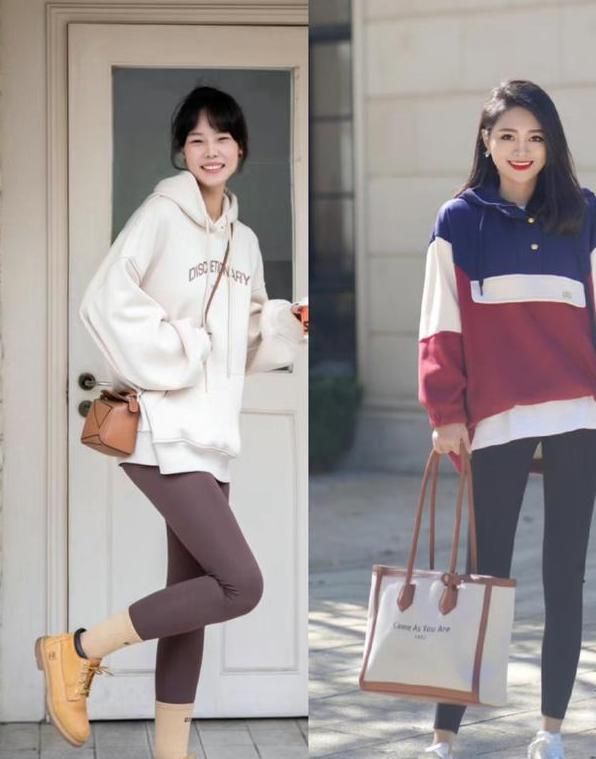 如果身材一般的女孩穿上芭比裤后担心腿部的问题,可以尝试中长款卫衣搭配芭比裤。中长款的卫衣能够掩盖粗壮或宽臀的问题。实际上,大多数女性的身体问题都集中在腰腹部,只需选择宽松的卫衣,遮挡住腰部和臀部的线条,整体比例感会更加轻盈。在选择中长款卫衣搭配芭比裤时,还需注意保暖。可以考虑卫衣和马甲叠穿,或者卫衣和棒球外套叠穿的方式,更加实用。为了展现更精致俏皮的风格,可以选择毛线堆堆袜或中筒袜搭配,保护脚踝线条,让整个造型更加时尚高雅。