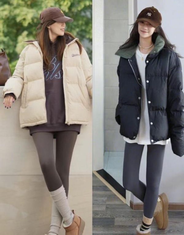 北方的冬天可以非常寒冷,早上送孩子上学后,我的头发都结冰了,让我不禁打了个寒战。这个季节穿短款羽绒服再合适不过了。选择稍微蓬松的短款羽绒服,不仅保暖性更好,而且不会让人看起来矮个子。搭配芭比裤时,可以选择稍长的打底衫,如能遮住臀部的T恤或卫衣,能更好地修饰身材。芭比裤具有很好的弹性,穿上后能更自然地修饰腿型,使双腿显得更修长笔直。只需注意遮挡住腰部和臀部的宽度,就能展现出纤细轻盈的美感。