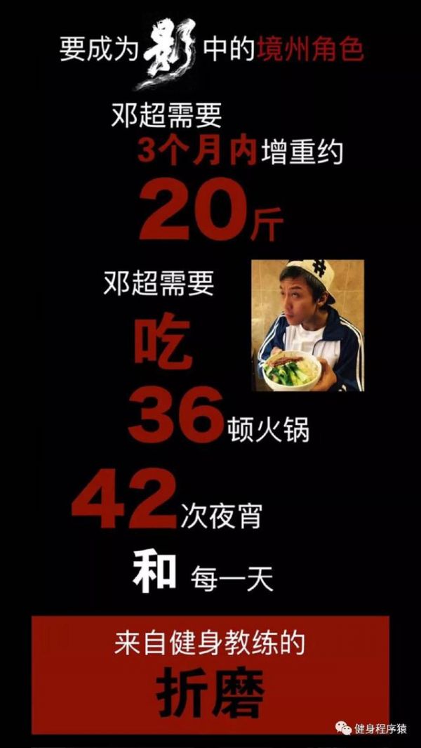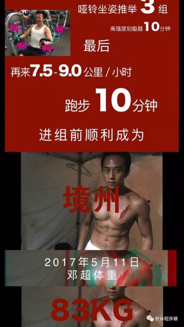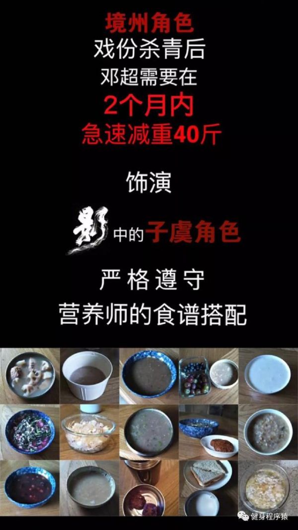 邓超这波操作震惊了,为了拍戏60天暴瘦40斤,从健壮到瘦骨嶙峋,减重减到后面身体报警,多次眩晕。他是在用伤害自己的方式去让效果最好,这样的演员外国有克里斯蒂安贝尔为了演好《机械师》半个月瘦30斤,有阿米尔汗为了演好《摔跤吧!爸爸》增肥又减重,这种敬业的演员值得点赞。但是健身程序猿奉劝大家,不要太极端的减肥,饮食还是要适度。(内心OS,想要这么极端的减肥也得有这个毅力啊)