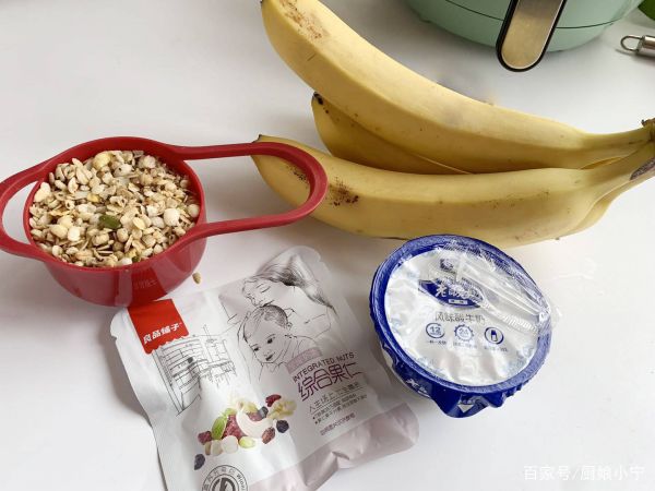 燕麦片、酸奶、香蕉、坚果。