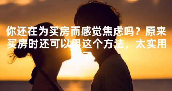 你还在为买房而感觉焦虑吗?原来买房时还可以用这个方法,太实用了