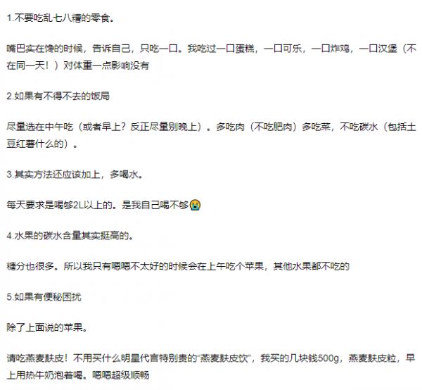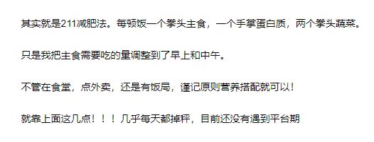 除了严格遵循211饮食法外,这位楼主还给出了自己在用的饮食技巧: